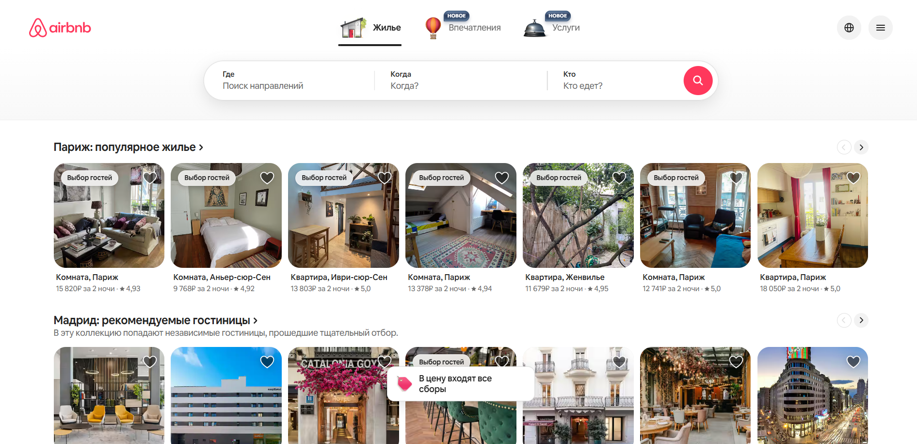 - Разнообразие выбора. Airbnb предлагает 6+ миллионов уникальных объектов размещения в 100,000+ городах по всему миру. От студий в центре города до уютных домиков у моря, Airbnb предоставляет широкий спектр вариантов, соответствующих разным бюджетам и предпочтениям.