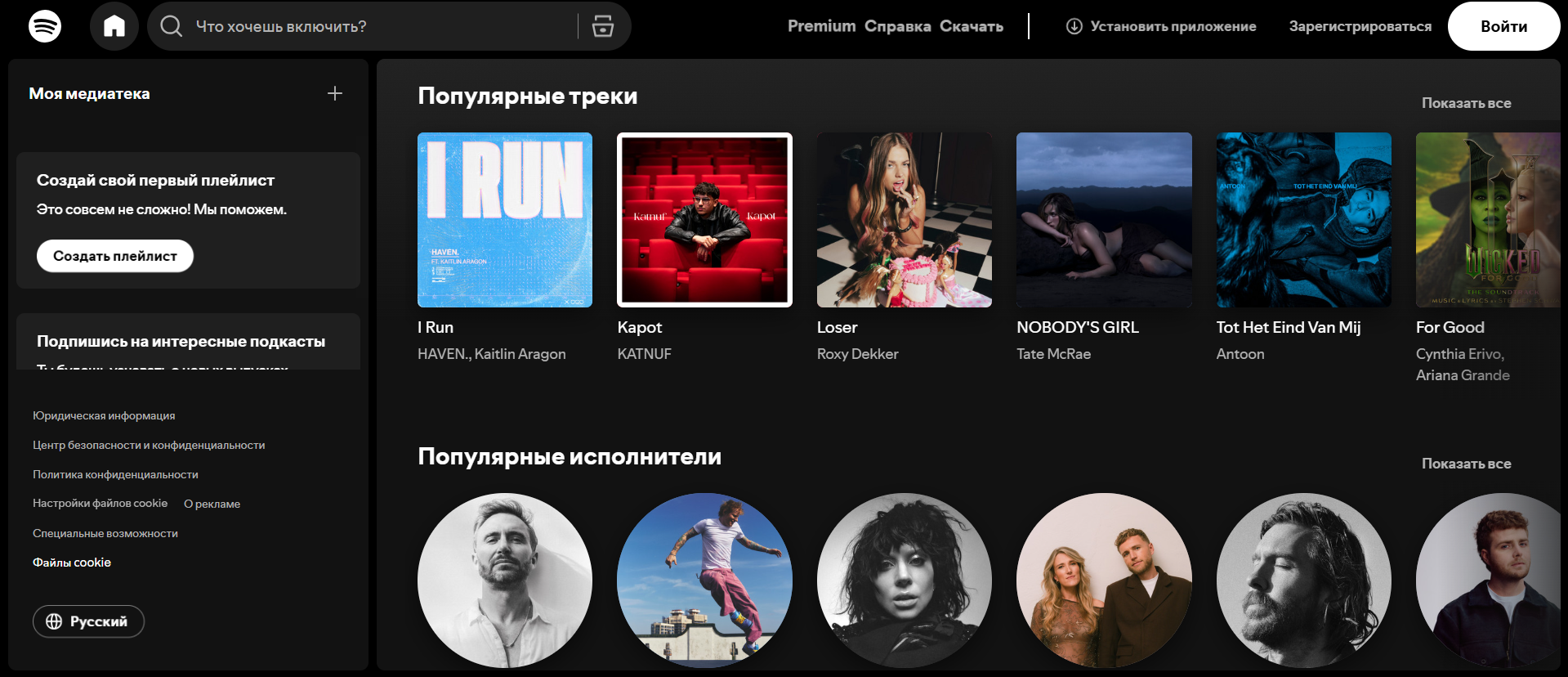 Бесплатная версия Spotify доступна с ограничениями – периодической рекламой, стандартным качеством звука и необходимостью регулярно включать VPN для доступа.