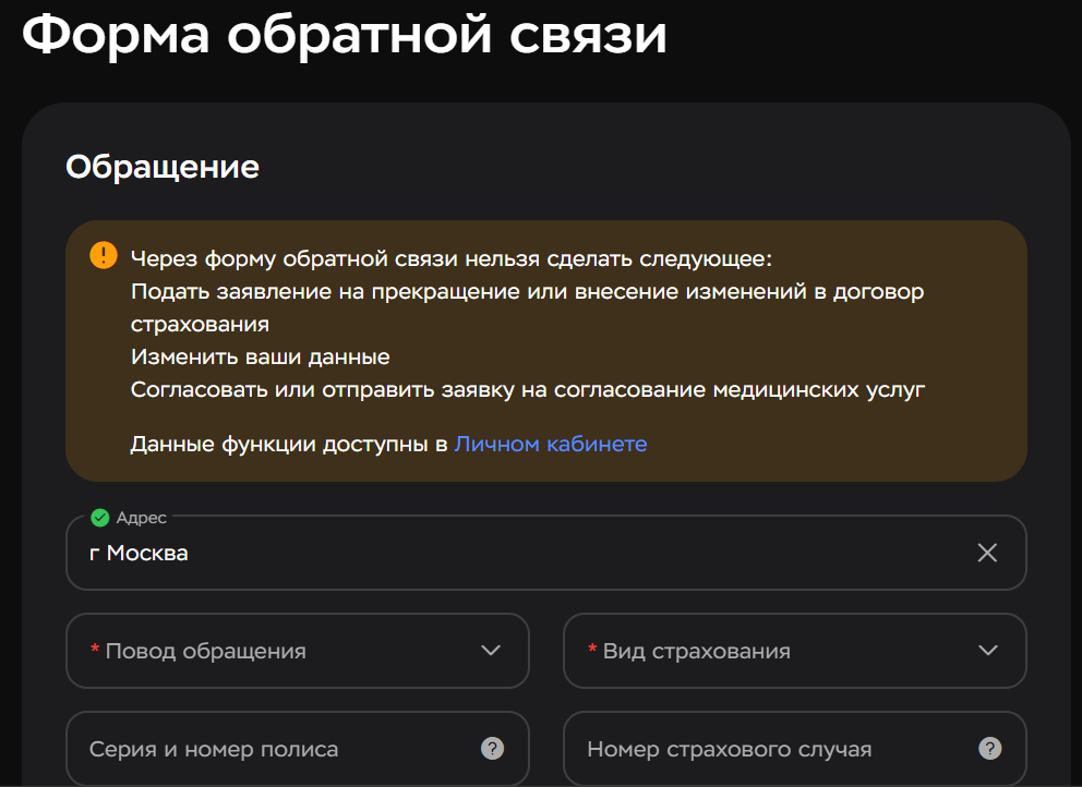 Опишите вопрос или предложение по работе страховой, если нужно – прикрепите документы. Форму можно заполнить анонимно, но в этом случае вы не сможете получить ответ от компании – чтобы получить его, вам нужно зарегистрироваться, потому что ответ придет в личный кабинет.