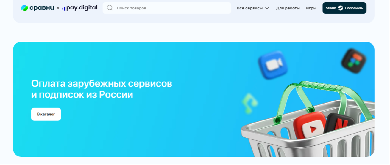 Сравни предоставляет возможность оплаты зарубежных подписок через партнерские сервисы-посредники. Платформа позволяет выбрать подходящий вариант оплаты подписки Perplexity Pro без необходимости иметь зарубежную карту.