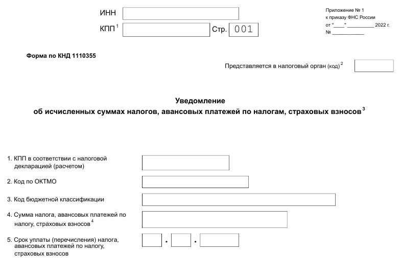 Перед внесением средств налогоплательщик обязан подать уведомление с исчисленными суммами налогов, сборов и взносов. Форма утверждена приказом ФНС.