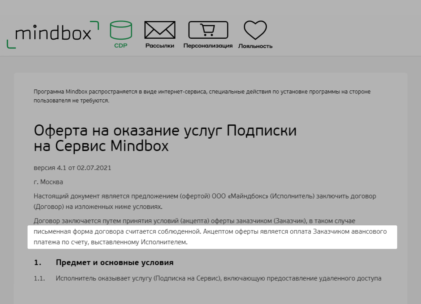 Четко обозначьте действия, которые считаются согласием с офертой: оплата заказа, регистрация на сайте, нажатие галочки «Принимаю условия оферты». Прочтение документа не считается акцептом.