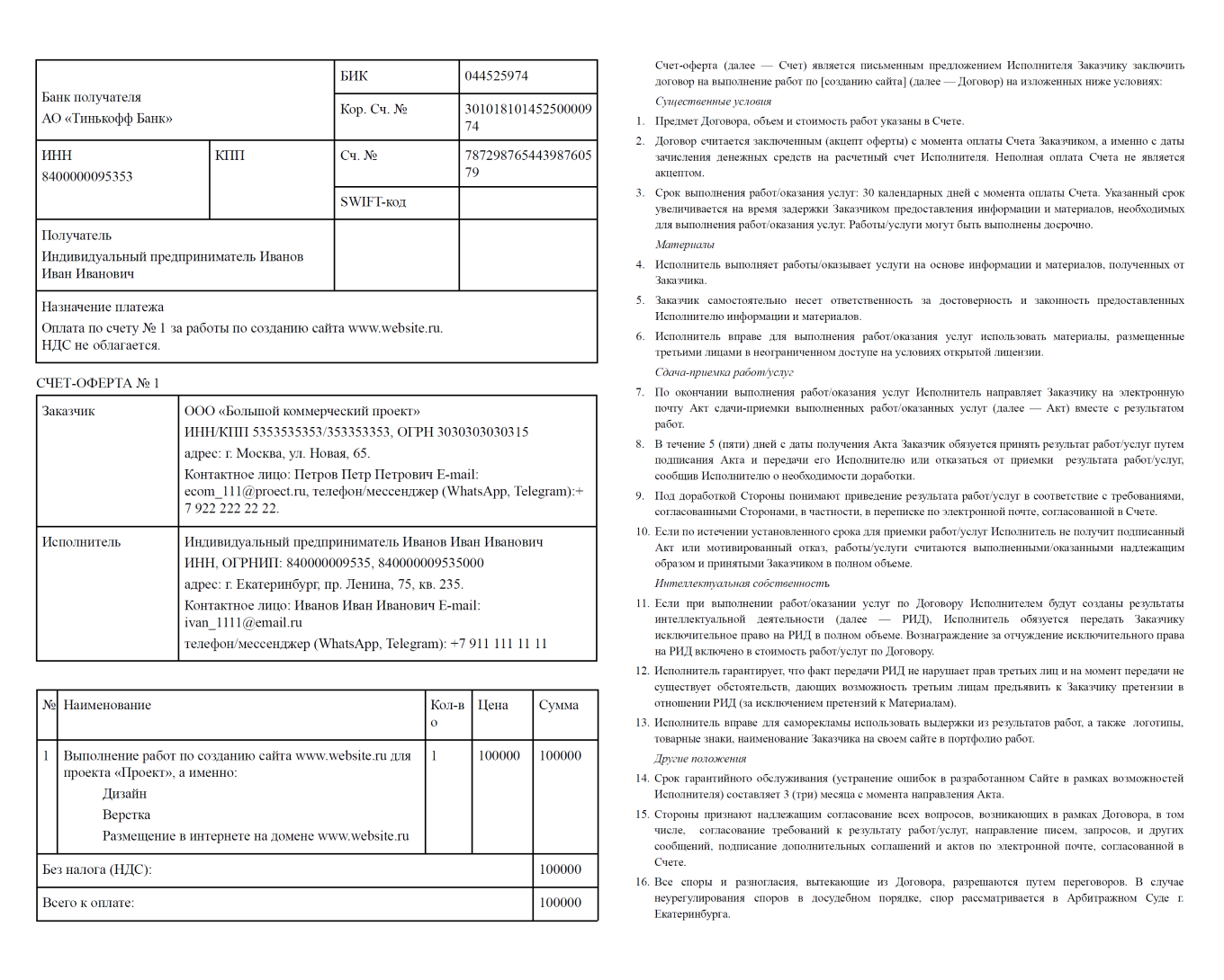После подписания и оплаты счёта‑оферты обе стороны фактически заключают договор. Этот инструмент позволяет одновременно зафиксировать согласие с условиями сделки и оформить платёжное обязательство.