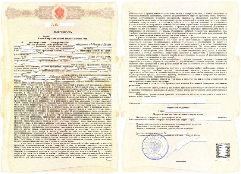 Для оформления доверенности сначала нужно подготовить данные обеих сторон: