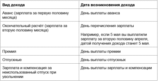 Налоговую базу определяют с учётом трёх дат: дата получения дохода, дата удержания НДФЛ и срок уплаты налога. Доходы могут быть денежными или материальными.