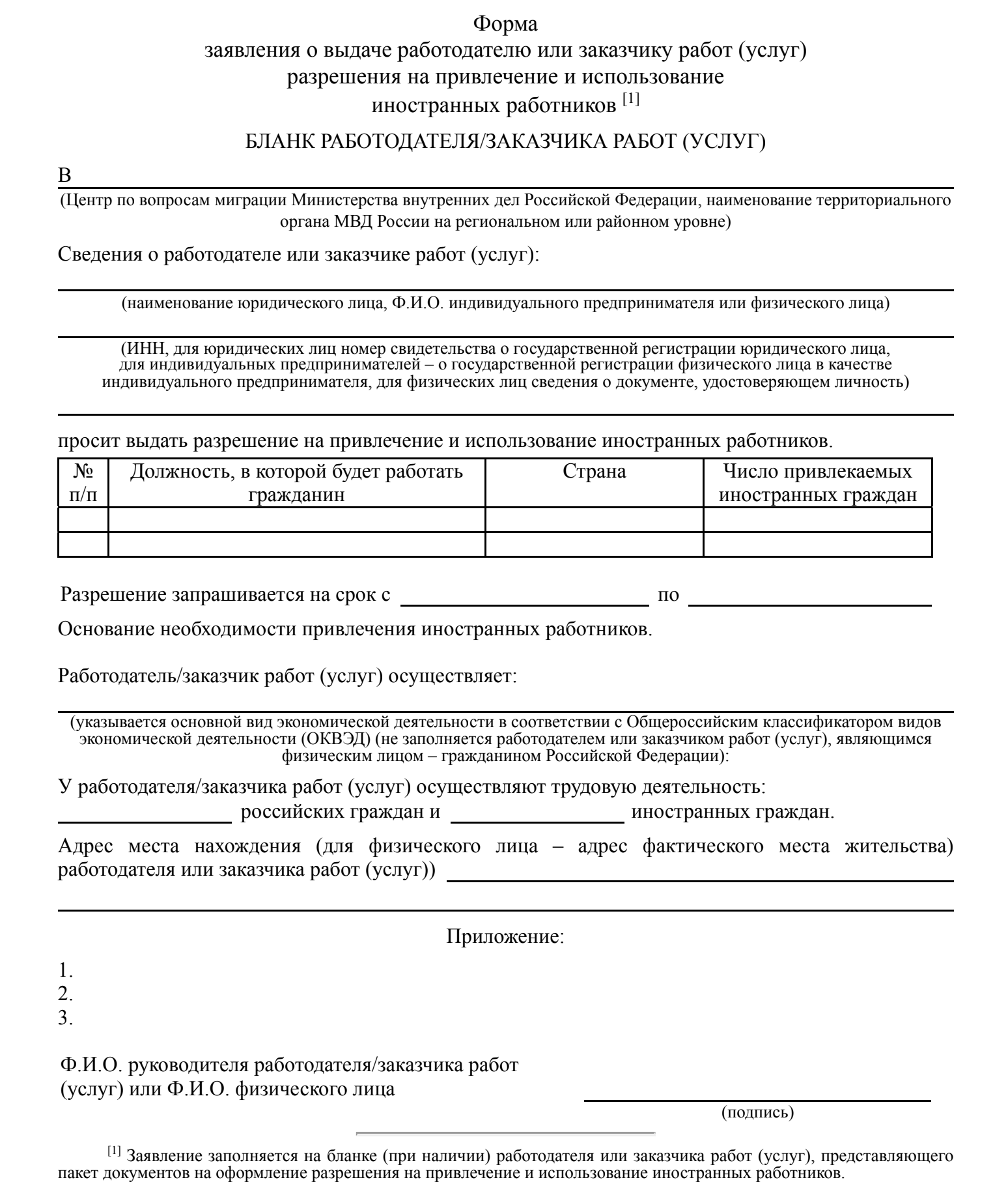 Чтобы официально устроить трудового мигранта, необходимо получить разрешение о МВД. Заявление пишется по готовой форме:
