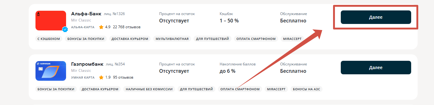 Используйте фильтры для сравнения условий: стоимость обслуживания, процент за переводы, кешбэк, наличие мобильного приложения.