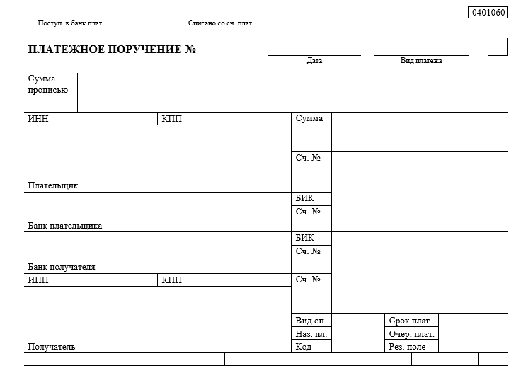 Стандартный бланк платёжного поручения доступен для скачивания на официальных ресурсах.