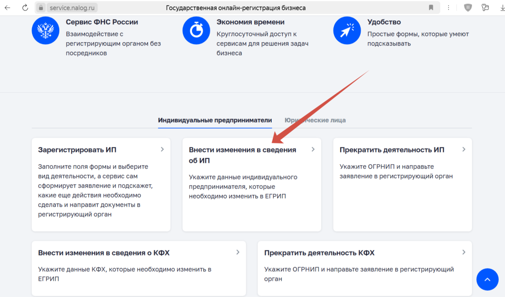 Сведения, которые указываются при получении статуса ИП, автоматически попадают в Единый государственный реестр индивидуальных предпринимателей. Оформить статус помогают кредитные организации – в разделе «Регистрация бизнеса под ключ онлайн» на нашем сайте можно сравнить предложения банков и выбрать подходящий вариант. В разделе «Онлайн бухгалтерия для ИП» представлены организации, занимающиеся аутсорсингом бухгалтерских услуг, некоторые из них готовы взять на себя внесение изменений в ИП.