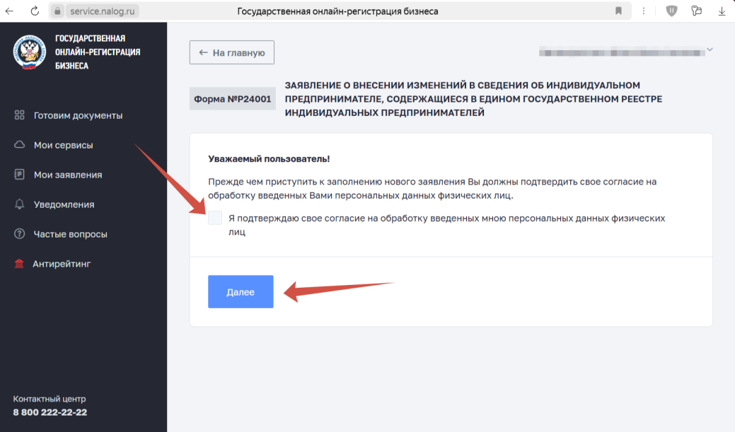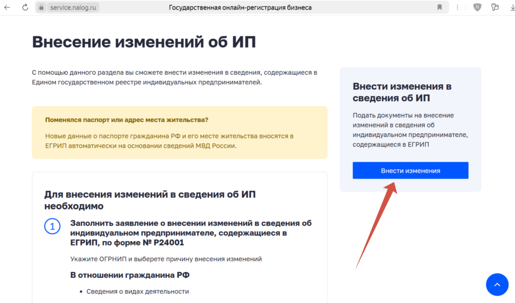 Для внесения изменений в ЕГРИП следует подать заявление по форме №Р24001, обратившись лично или через представителя (по доверенности):