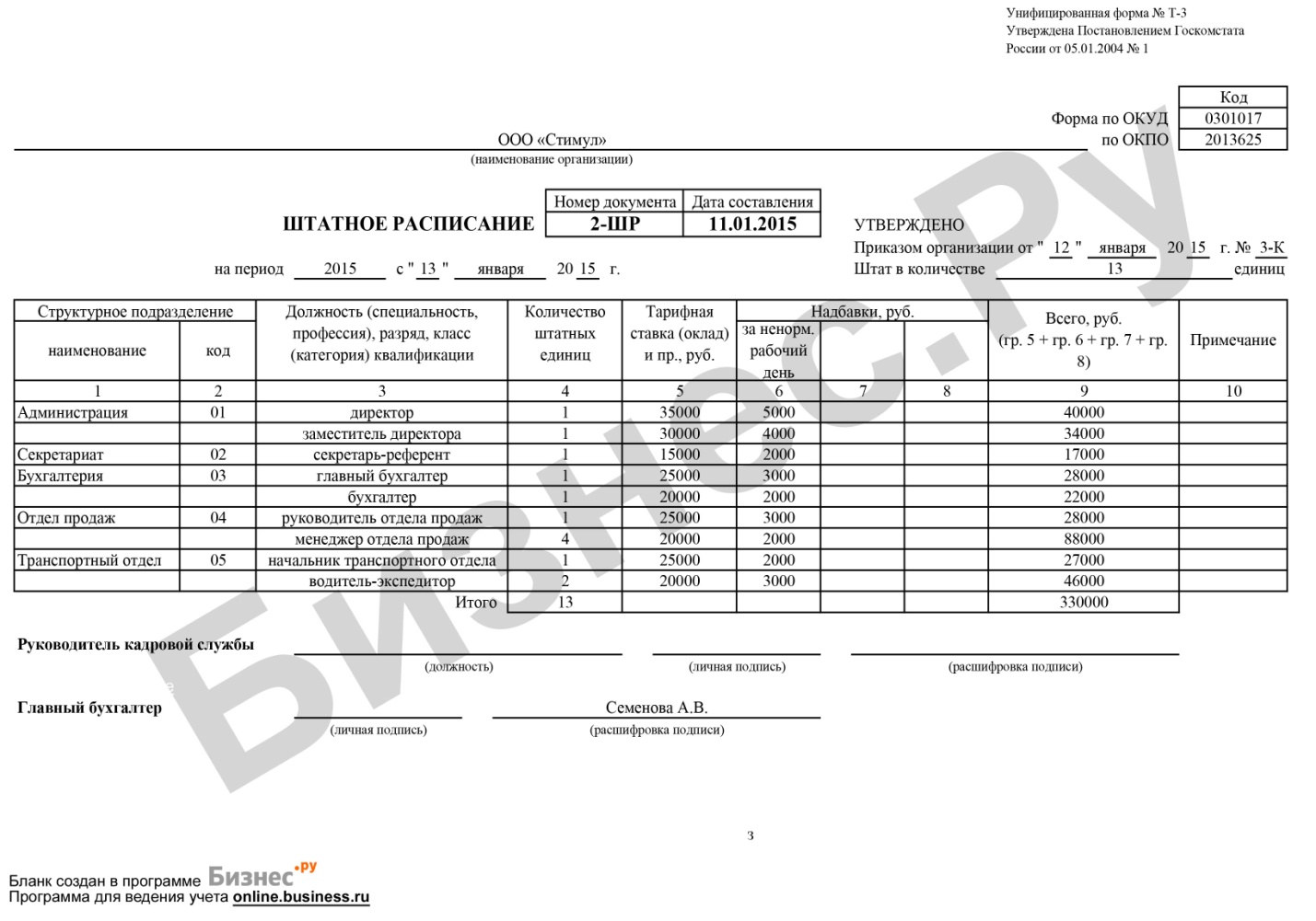 Для любого предпринимателя, имеющего официально трудоустроенных работников, штатное расписание является обязательным инструментом управления персоналом. Этот документ: