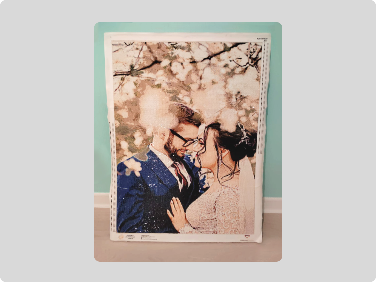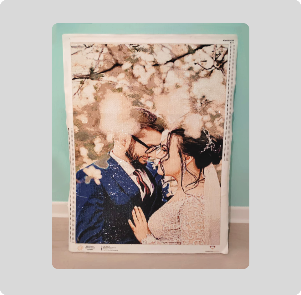 Лично мне приятнее делать картины для близких друзей в подарок, бесплатно. Например, недавно я сделала картину для друзей по их свадебному фото, и она была высотой почти метр. Я собирала её в общей сложности несколько месяцев.
