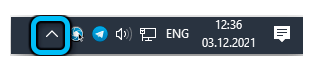 - На панели задач, где отображаются загружаемые при запуске Windows программы, нужно нажать стрелку вверх.