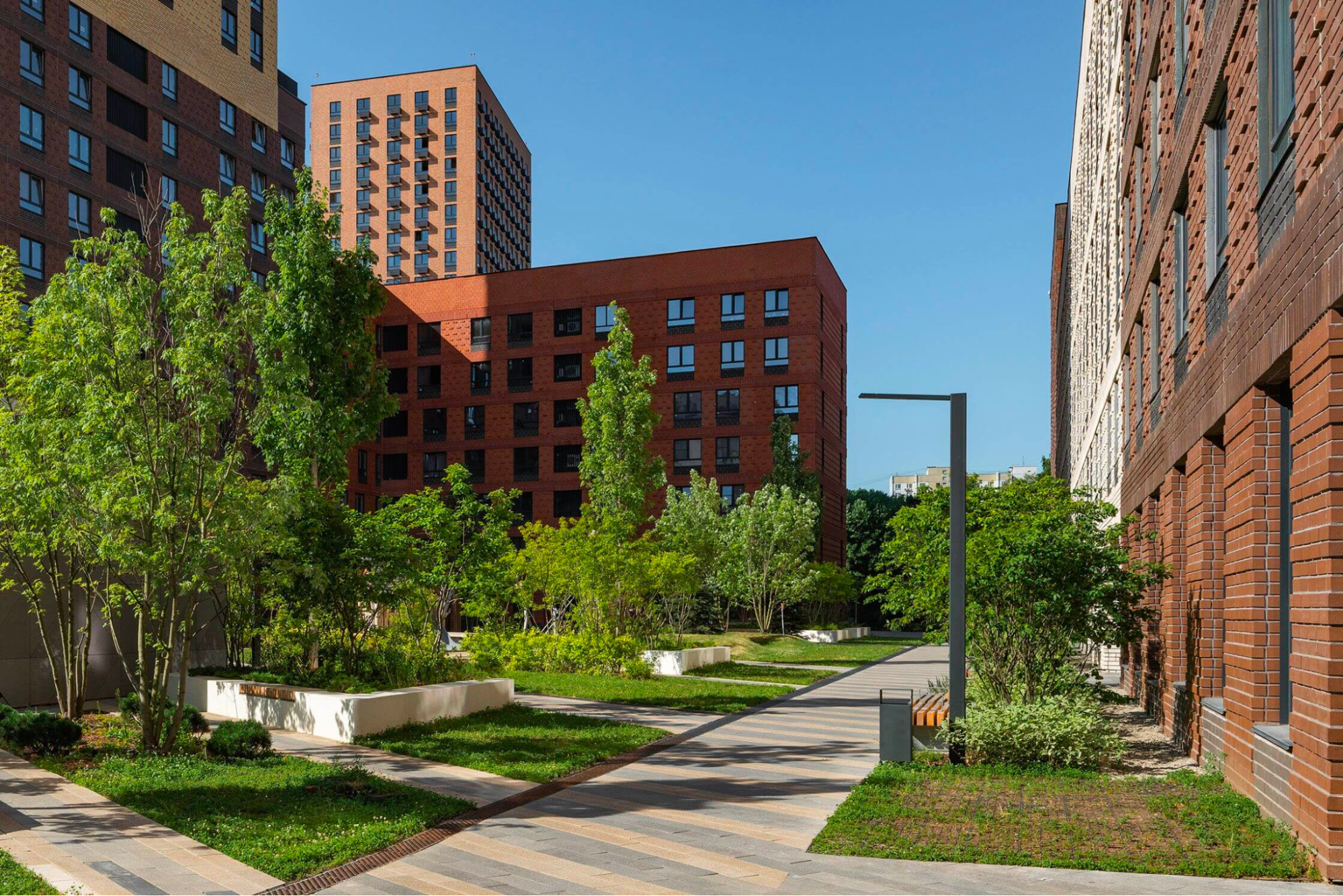 Здесь, в районе Лефортово, можно купить квартиру в новостройке ПИК — в жилом квартале «Красноказарменная 15» недалеко от набережной Яузы. Дома тут строятся по современному квартальному типу: внутри территорий, очерченных жилыми корпусами, находятся уютные дворы-парки, а снаружи — спортивные площадки и детсады. Посмотрите, как здорово всё продумано.
