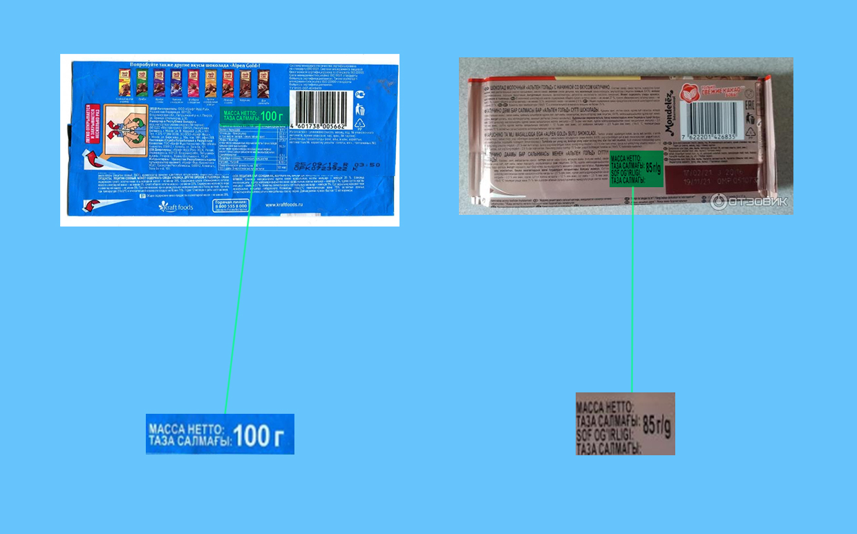 Визуально плитки шоколада не изменились, но в весе потеряли. Раньше Alpen Gold был по 100 г, сейчас — 85 г. Другие производители тоже стали выпускать шоколад весом 85–90 г. Но есть и те, кто по-прежнему продаёт плитки по 100 г.