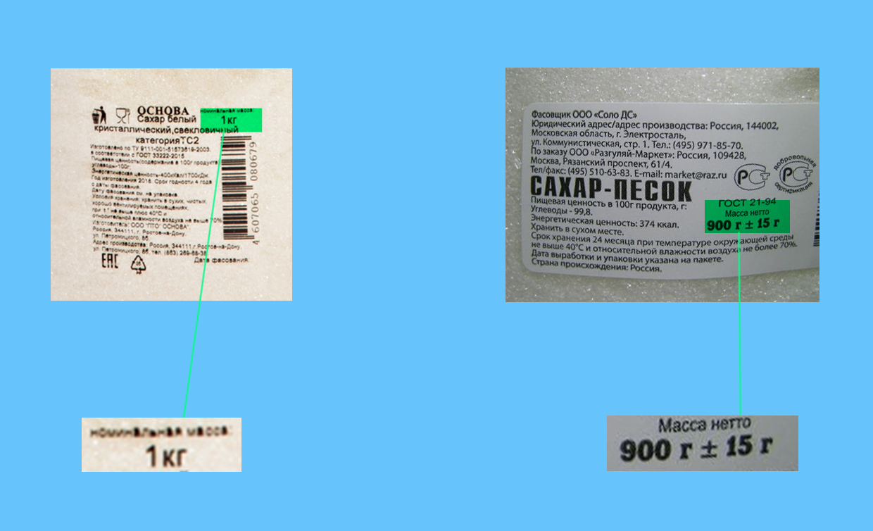 Упаковки сахара от разных производителей очень похожи между собой. Чтобы понять разницу, нужно смотреть вес на этикетке. Там можно встретить не только 1 кг, но и 900 г, а в некоторых случаях и вовсе 800 г.