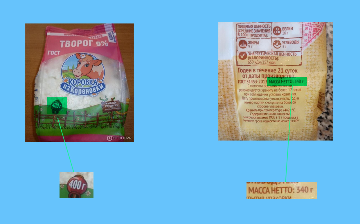 - Изучайте ценник, обращайте внимание на вес и объём товара. У разных производителей упаковки могут быть внешне одинаковыми, а по весу отличаться на 10–30 г.