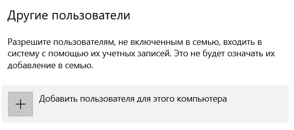 - Добавлять новых пользователей. Можно добавить пользователя как через аккаунт Майкрософт (нужно будет указать его почту), так и без аккаунта Майкрософт – в этом случае пользователь будет локальным.