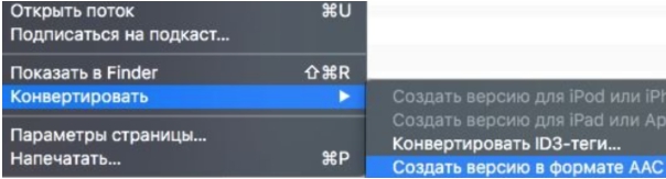 - В меню «Файл» ищем «Конвертировать», нам нужно расширение .aac.