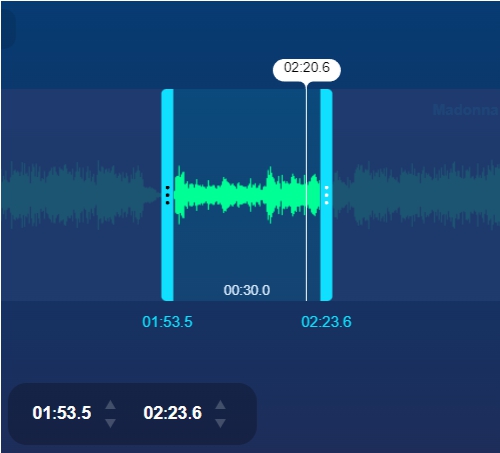 - Передвигаем голубые линии так, чтобы выделить нужный участок. Как вариант – можно задать конкретное время на таймере.