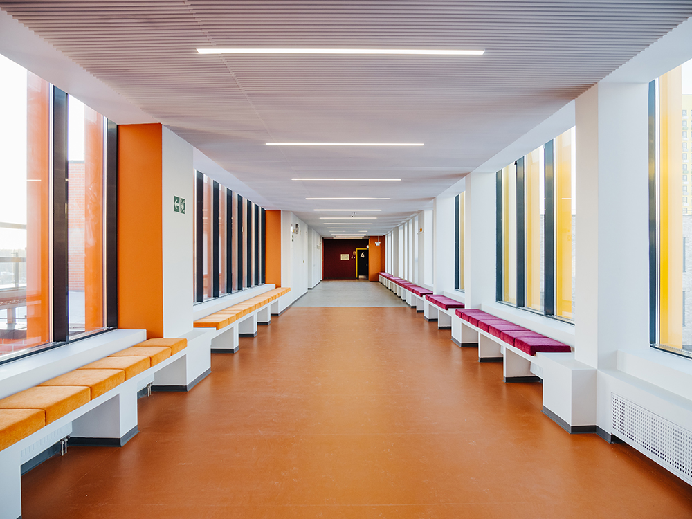 Обычно школу воспринимают как «класс → коридор» — в основном в типовых школах так и есть. Современные же новые школы проектируются таким образом, чтобы у учеников было больше свободы в движении и коммуникации: просторные классы и комнаты для отдыха, лаборатории для проведения экспериментов, музыкальные и художественные кабинеты, яркое оформление помещений и много света — обучение становится не обузой, а очень интересным процессом.