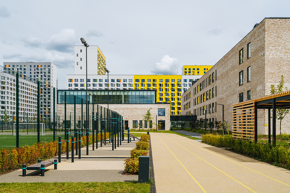 В России есть такие безопасные и комфортные пространства — например, образовательный комплекс «Бунинские луга» от ПИК. В него входит школа на 1100 учеников и детский сад на 150 малышей. На территории комплекса есть собственный фруктовый сад, открытый учебный класс, теплица, игровые площадки и стадион.