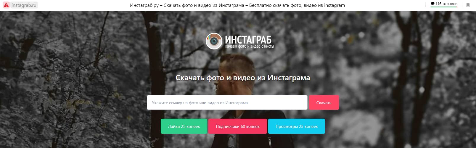 - Инстаграб. Онлайн-сервис для скачивания фото посредством указания ссылки на пост в Инстаграме.