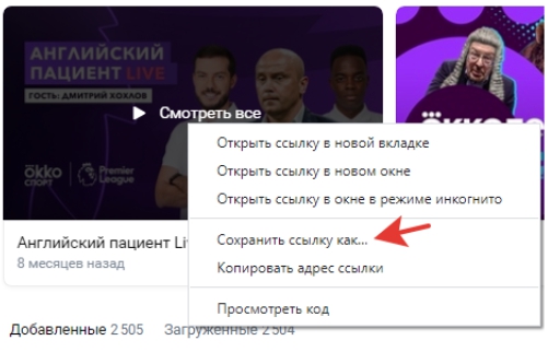 - нажимаем на нужное видео правой кнопкой мышки;