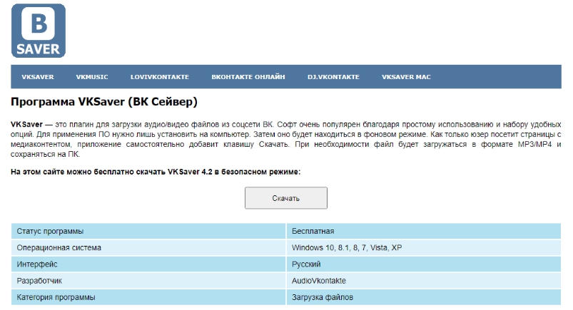 Для применения Vksaver нужно установить ПО на компьютер. Программу можно скачать по ссылке https://vksaver.ru/. Затем она будет находиться в фоновом режиме. Как только пользователь откроет страницу с нужным видео, приложение самостоятельно добавит кнопку «Скачать».