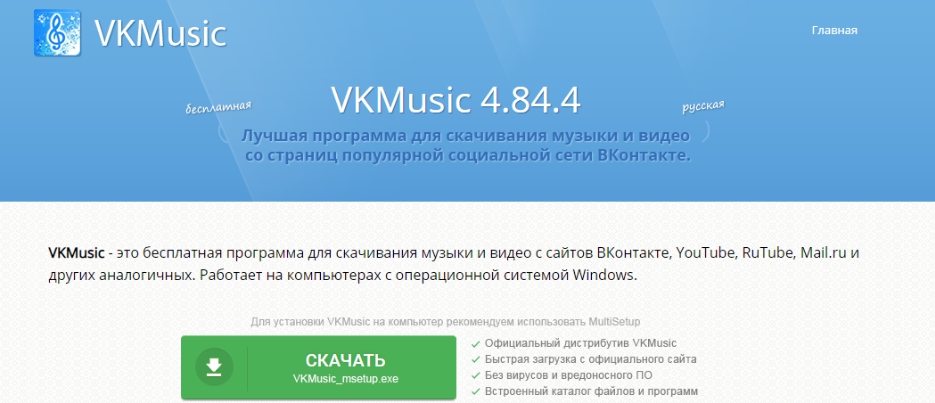Одна из лучших программ для скачивания музыки из ВК. Ссылка для скачивания программы https://vkmusicinfo.ru/. С помощью софта можно искать видеоролики в ВК, сохранять их на компьютере в форматах MKV и MP4. Формат и качество видео можно выбирать каждый раз вручную или настроить автовыбор в настройках программы.