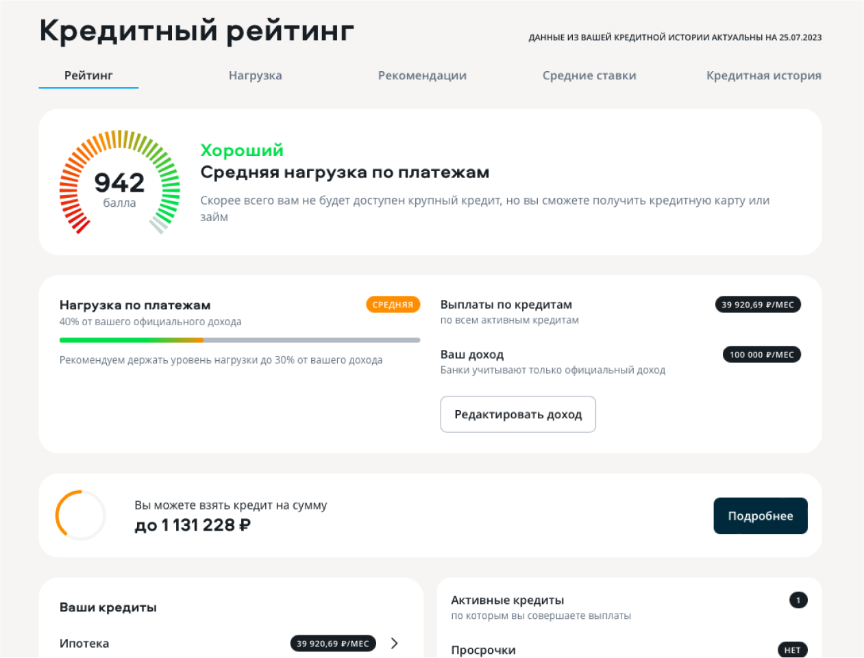 Посмотреть свой кредитный рейтинг и узнать, кредит на какую сумму банк, скорее всего, одобрит.