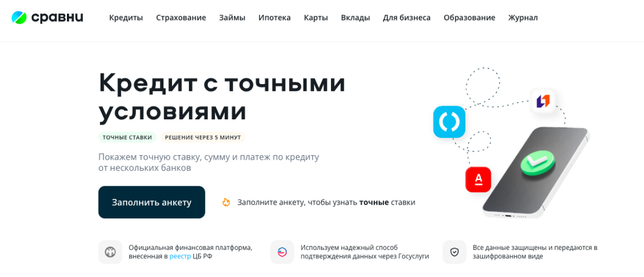 Сравнить условия по кредитам, автокредитам, ипотеке.