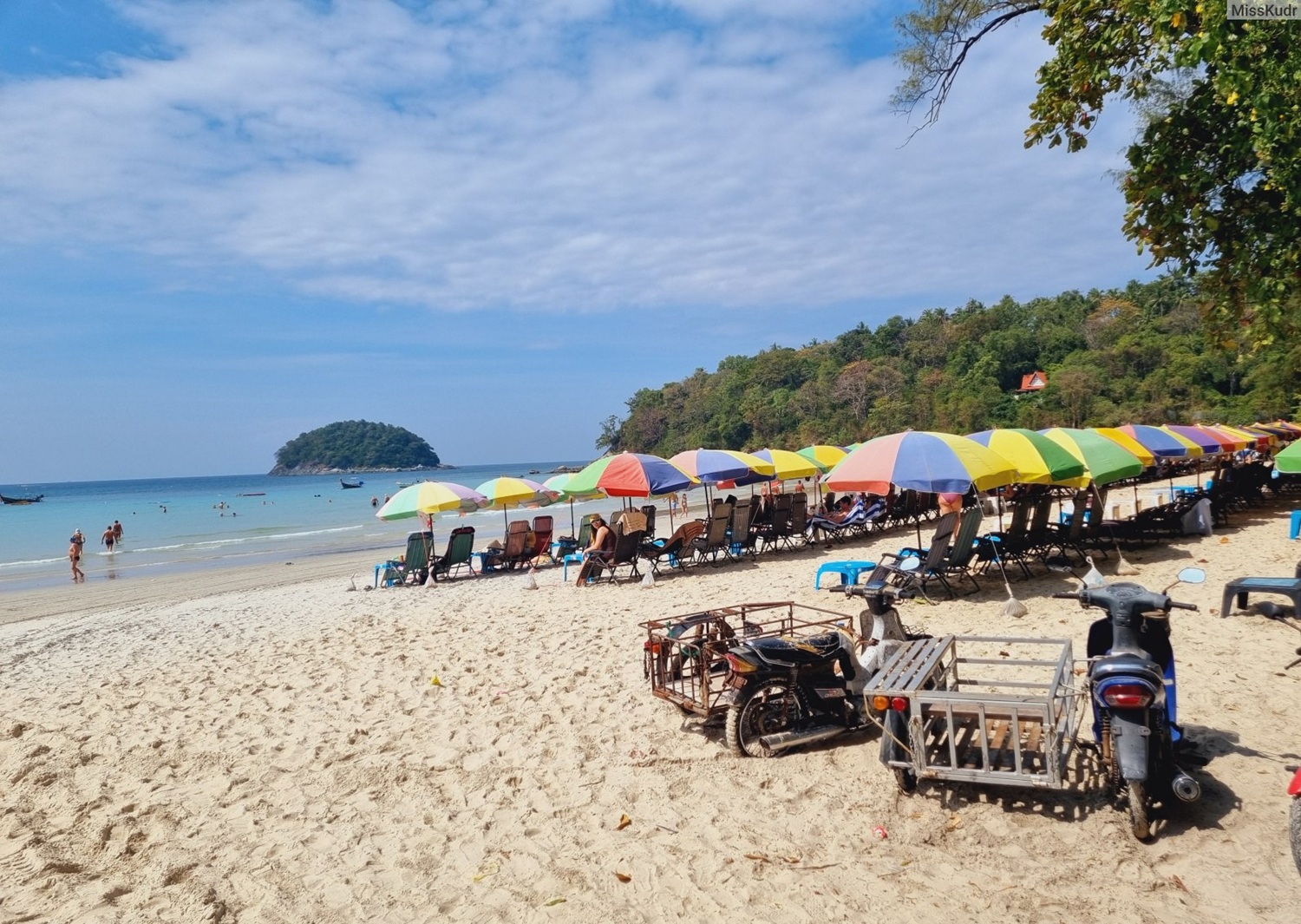 Относительно небольшой пляж, мало (по сравнению с Ката Яй) магазинов, мало парковок |