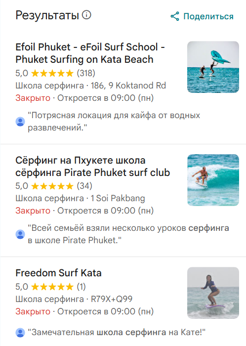 Около пляжа есть 3 крупные школы серфинга: eFoil Surf School, Pirate Phuket Surf Club и Freedom SurfKata.